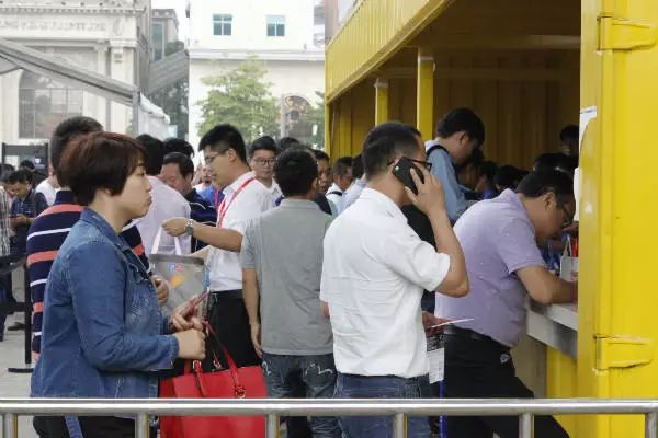 開展后,展會入口處排氣長龍。